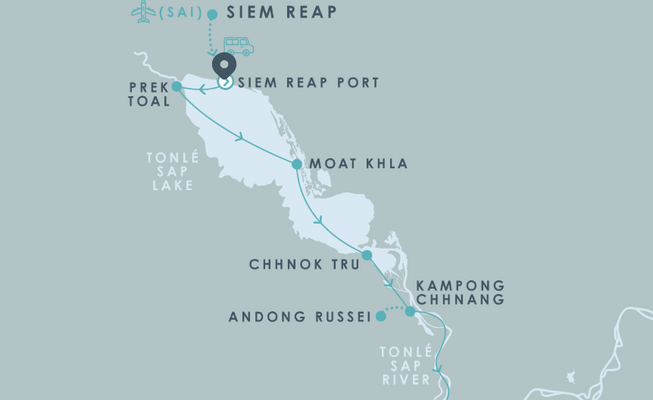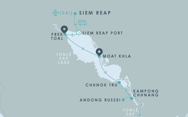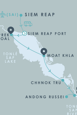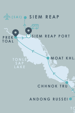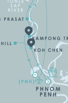 Отправляясь вверх по реке во время высокой воды по маршруту Пномпень (PNH) — Сиемреап (SAI) вы посетите Пномпень и биосферный заповедник озера Тонлесап, занесенный в спиок ЮНЕСКО.