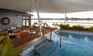 Круизный лайнер по реке Меконг входит во флот, который в 2023 и 2024 годах был назван лучшей в мире речной круизной компанией по версии журнала Travel + Leisure. В 20 просторных люксах с кондиционерами есть окна во всю стену, из которых открываются захватывающие панорамы постоянно меняющихся пейзажей.
